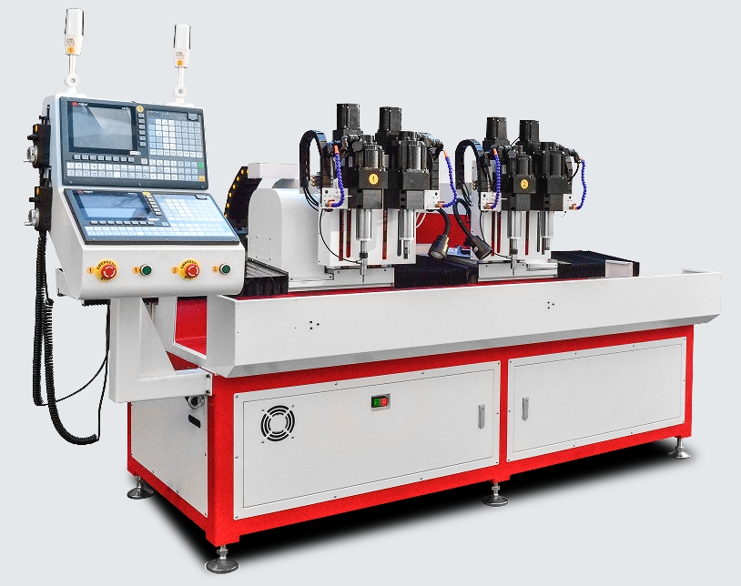 這是一臺來自浙江客戶定制的智能數(shù)控雙軸倒角機,雙工位同時檢測并補償平面度后再進行倒角加工。